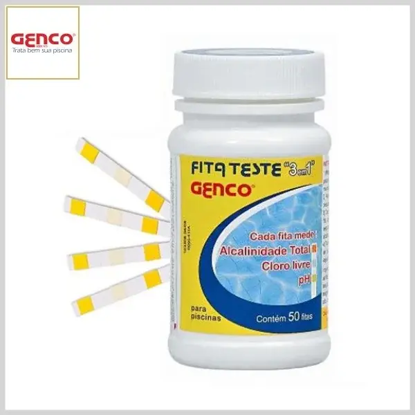 Fita Teste 3em1 p/Medição de Parâmetros da Água (50 und) - Frasco Plástico - Genco