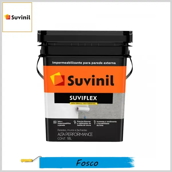 Suvinil SUVIFLEX é um produto impermeabilizante com elasticidade permanente, que acompanha os movimentos de dilatação e retração das superfícies que causam pequenas trincas e fissuras, evitando assim a penetração de água e a consequente deterioração das pinturas e superfícies.