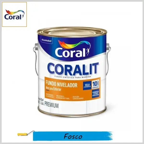 CORALIT FUNDO NIVELADOR é um fundo sintético branco fosco com alto poder de enchimento, indicado para uniformizar a absorção nas superfícies de madeiras novas, melhorando o aspecto final da pintura e aumentando o rendimento do esmalte de acabamento. É fácil de aplicar e de lixar, possuindo ótimo rendimento e secagem rápida. Possui durabilidade de 10 anos, quando combinados fundo e esmalte sintético da família Coralit.
