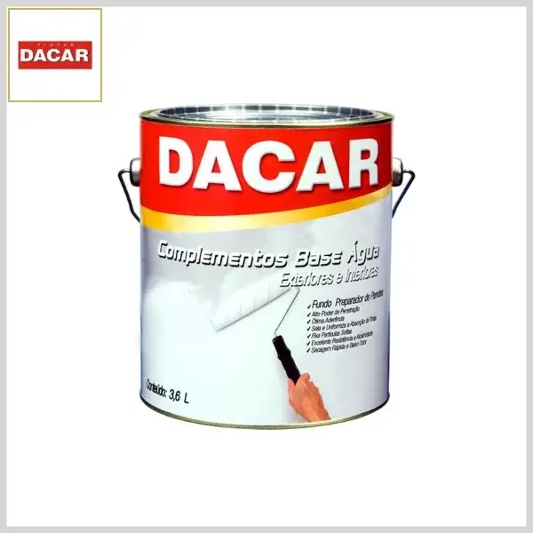 Dacar Fundo Preparador Base Água é um complemento acrílico incolor, especialmente formulado para preparação de pinturas sobre alvenaria, uniformizando a absorção e aumentando a aderência de superfícies porosas de áreas internas e externas. É indicado para fixar partículas soltas, selando e uniformizando previamente os locais de pintura ou repintura com tintas látex ou acrílicas.