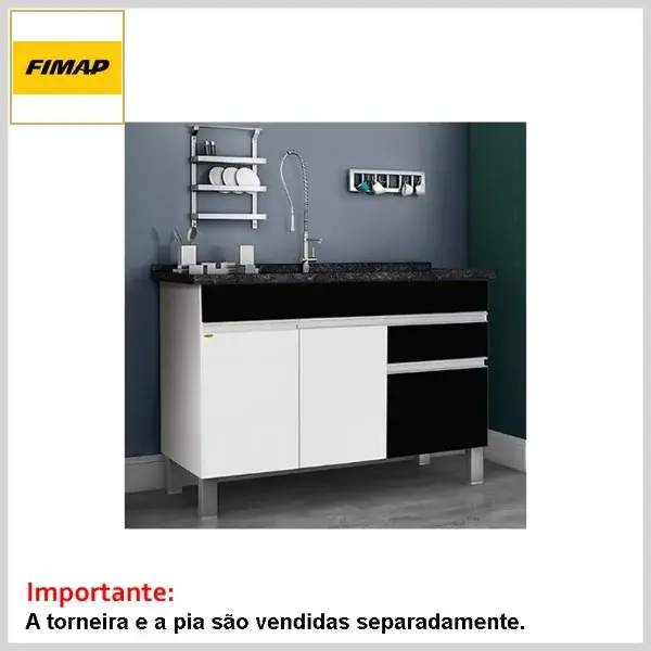 Gabinete de Cozinha 1.14 s/Tampo Aquarius Branco e Preto - 1140 x 685 x 525mm - Fimap