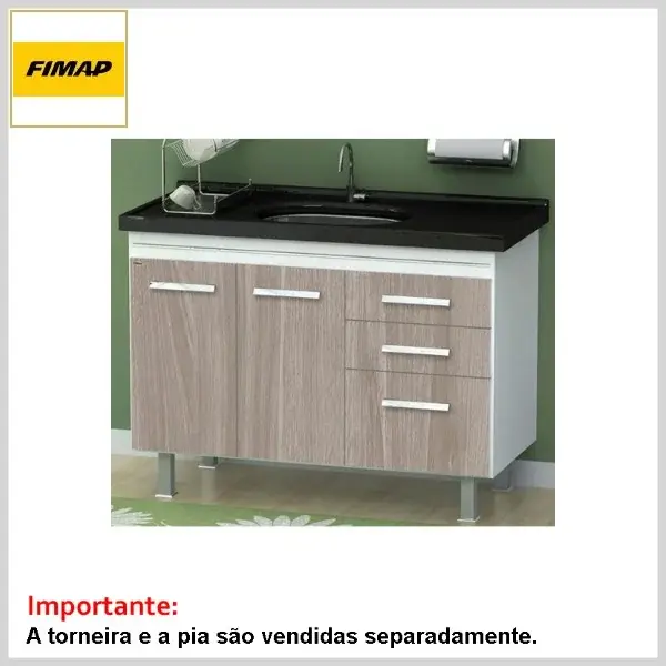 A torneira e o tampo da pia não acompanham o conjunto (adquirir à parte).