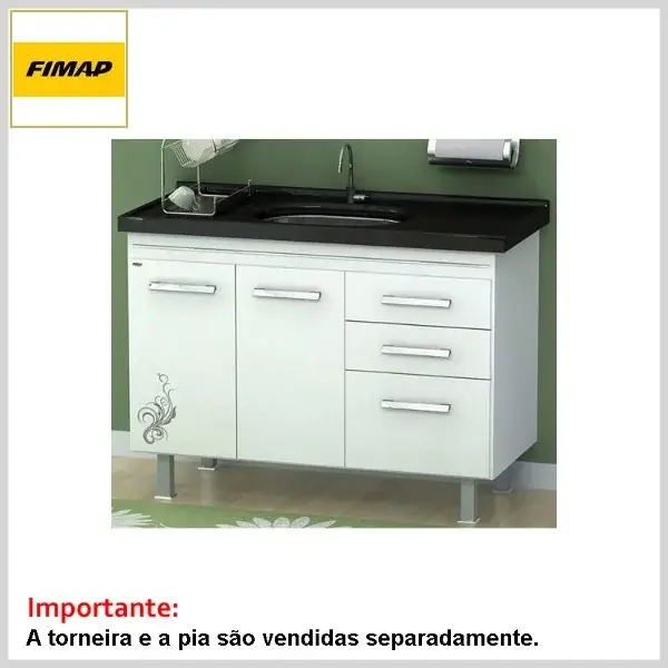 A torneira e o tampo da pia não acompanham o conjunto (adquirir à parte).