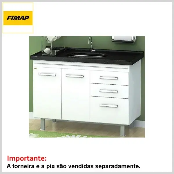 A torneira e o tampo da pia não acompanham o conjunto (adquirir à parte).