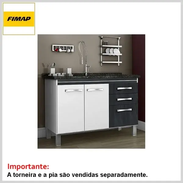 A torneira e o tampo da pia não acompanham o conjunto (adquirir à parte).