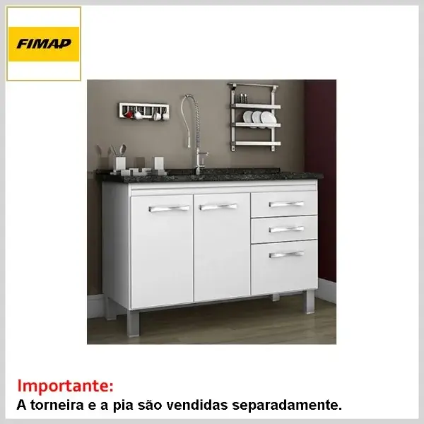 A torneira e o tampo da pia não acompanham o conjunto (adquirir à parte).