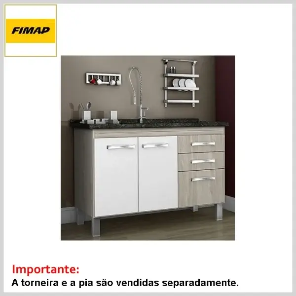 A torneira e o tampo da pia não acompanham o conjunto (adquirir à parte).