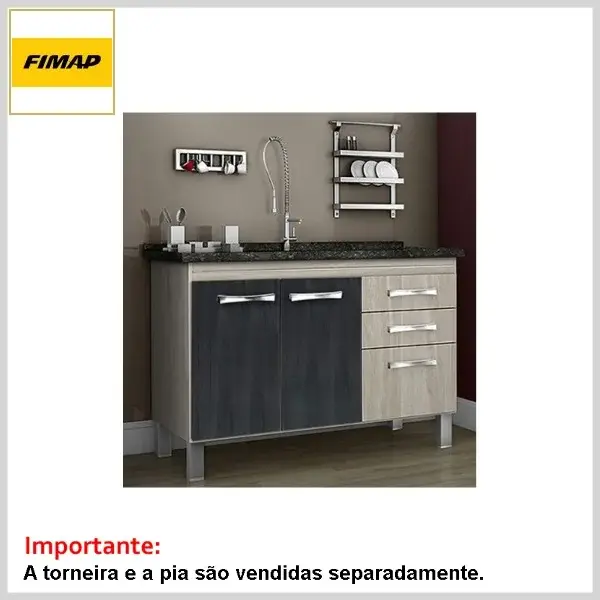 A torneira e o tampo da pia não acompanham o conjunto (adquirir à parte).