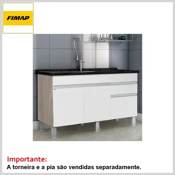 A torneira e o tampo da pia não acompanham o conjunto (adquirir à parte).