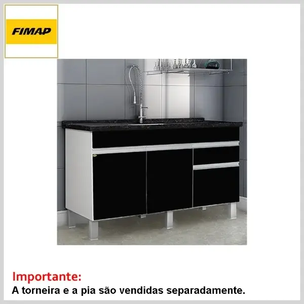 Gabinete de Cozinha 1.44 s/Tampo Aquarius Preto - 1440 x 685 x 525mm - Fimap