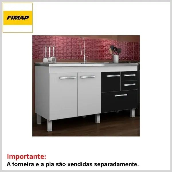 Gabinete de Cozinha 1.44 s/Tampo Classic Branco e Preto - 1440 x 685 x 525mm - Fimap