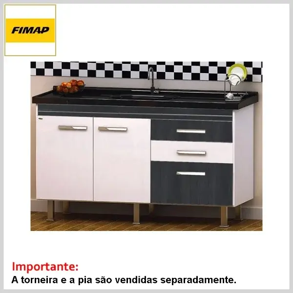 A torneira e o tampo da pia não acompanham o conjunto (adquirir à parte).