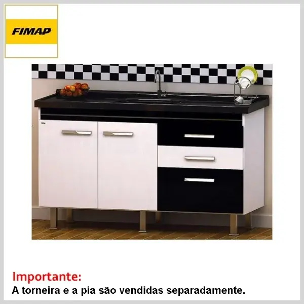 Gabinete de Cozinha 1.44 s/Tampo Criattiva Branco e Preto - 1440 x 685 x 525mm - Fimap