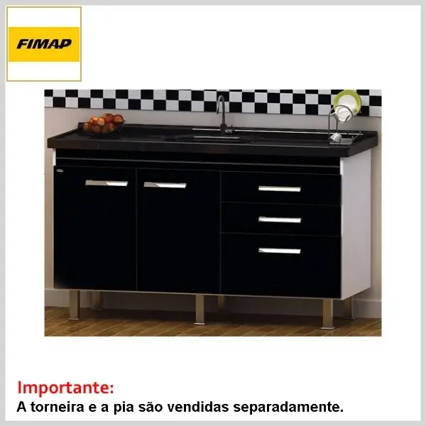 A torneira e o tampo da pia não acompanham o conjunto (adquirir à parte).