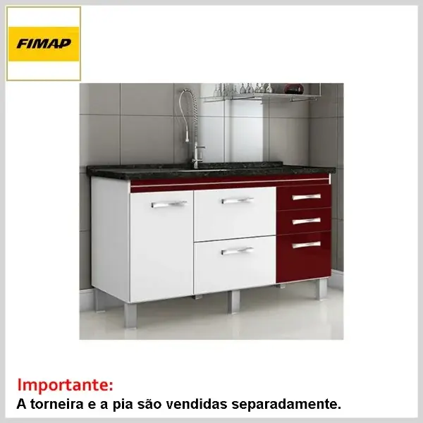 Gabinete de Cozinha 1.44 s/Tampo Magnus Branco e Bordô - 1440 x 685 x 525mm - Fimap