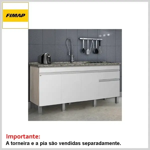 A torneira e o tampo da pia não acompanham o conjunto (adquirir à parte).