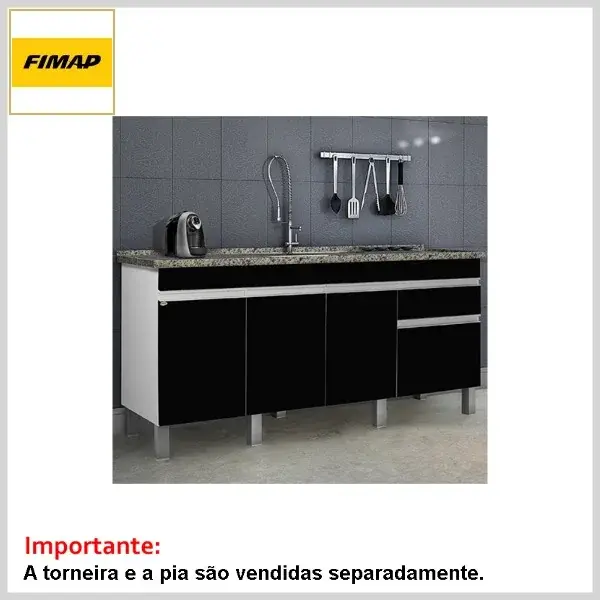 Gabinete de Cozinha 1.74 s/Tampo Aquarius Preto - 1740 x 685 x 525mm - Fimap