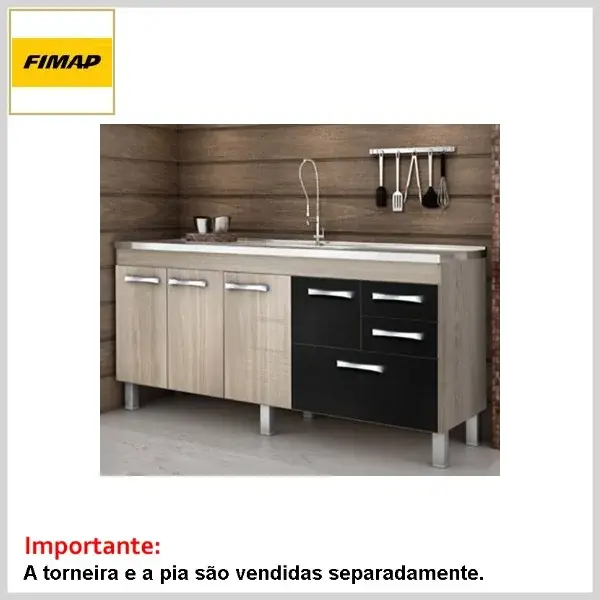 Gabinete de Cozinha 1.74 s/Tampo Classic Maple e Preto - 1740 x 685 x 525mm - Fimap
