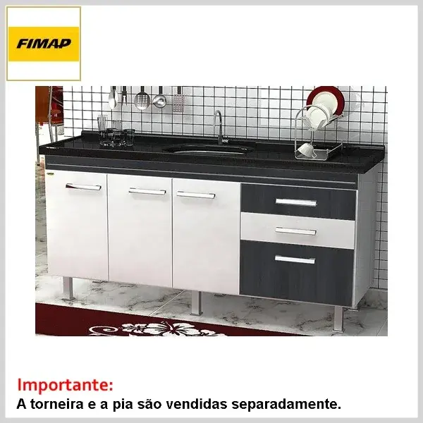 A torneira e o tampo da pia não acompanham o conjunto (adquirir à parte).