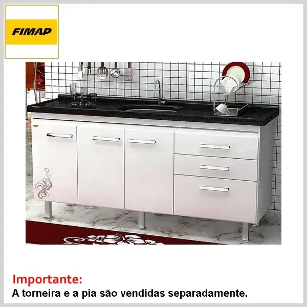 A torneira e o tampo da pia não acompanham o conjunto (adquirir à parte).