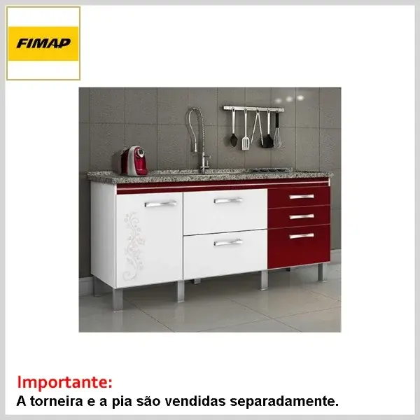 Gabinete de Cozinha 1.74 s/Tampo Magnus Branco e Bordô (Floral) - 1740 x 685 x 525mm - Fimap