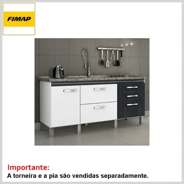 A torneira e o tampo da pia não acompanham o conjunto (adquirir à parte).
