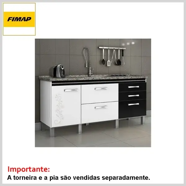 Gabinete de Cozinha 1.74 s/Tampo Magnus Branco e Preto (Floral) - 1740 x 685 x 525mm - Fimap