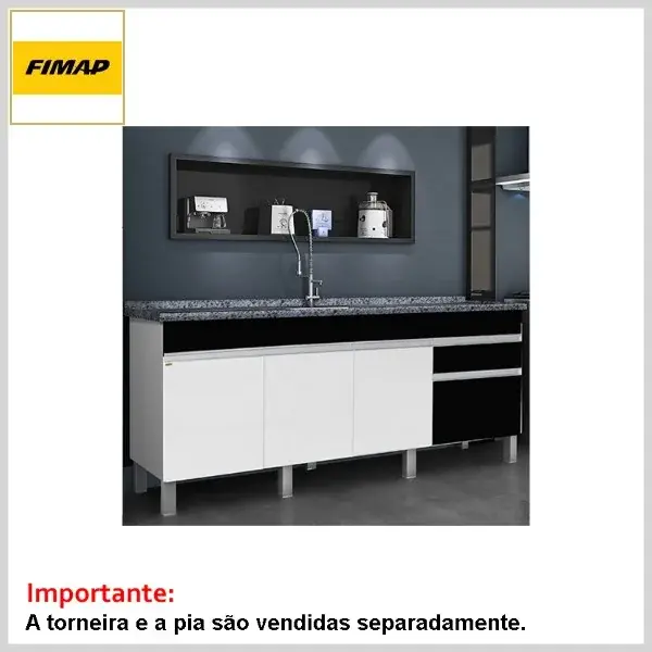 Gabinete de Cozinha 1.94 s/Tampo Aquarius Branco e Preto - 1940 x 685 x 525mm - Fimap