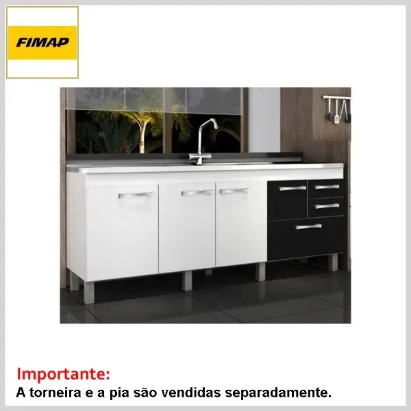 Gabinete de Cozinha 1.94 s/Tampo Classic Branco e Preto - 1940 x 685 x 525mm - Fimap