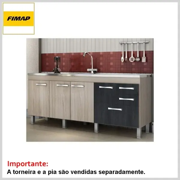 A torneira e o tampo da pia não acompanham o conjunto (adquirir à parte).