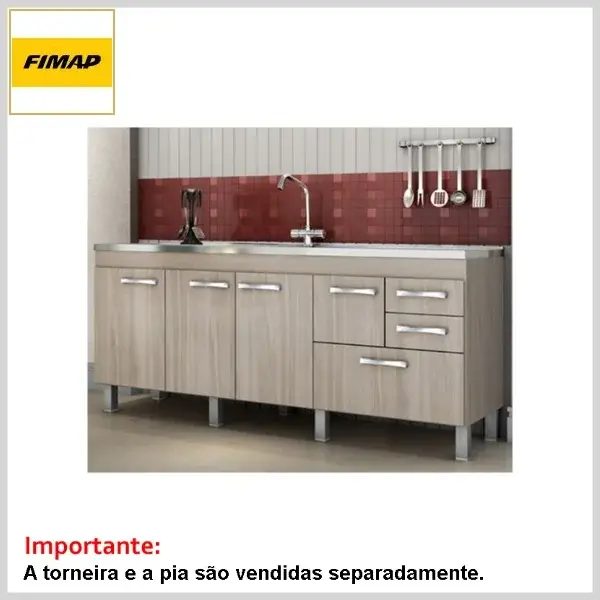 A torneira e o tampo da pia não acompanham o conjunto (adquirir à parte).