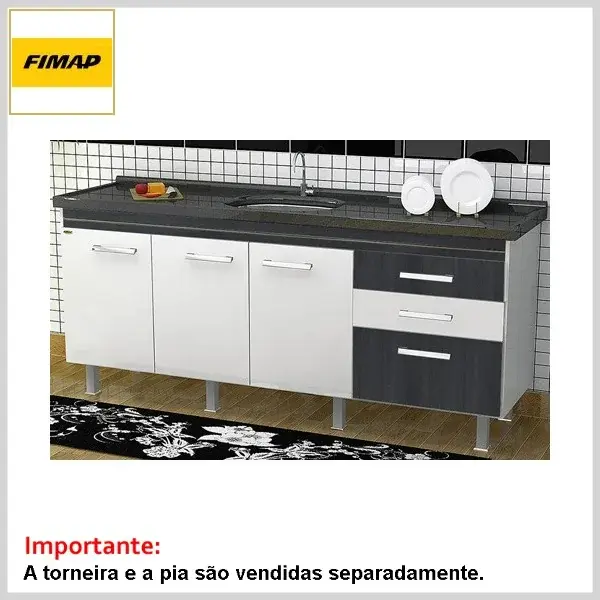 A torneira e o tampo da pia não acompanham o conjunto (adquirir à parte).