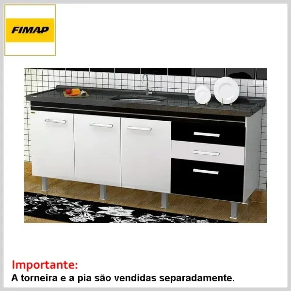 Gabinete de Cozinha 1.94 s/Tampo Criattiva Branco e Preto - 1940 x 685 x 525mm - Fimap
