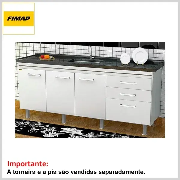 A torneira e o tampo da pia não acompanham o conjunto (adquirir à parte).