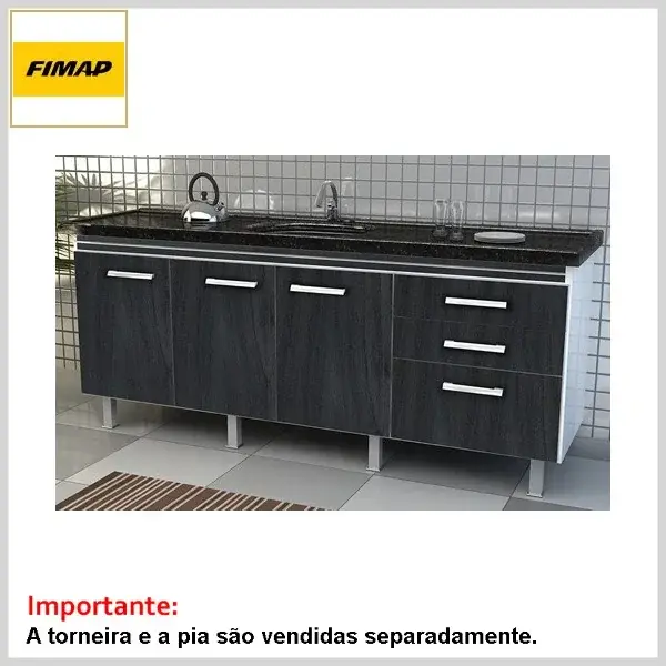 A torneira e o tampo da pia não acompanham o conjunto (adquirir à parte).