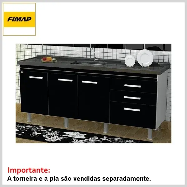 Gabinete de Cozinha 1.94 s/Tampo Criattiva Preto - 1940 x 685 x 525mm - Fimap