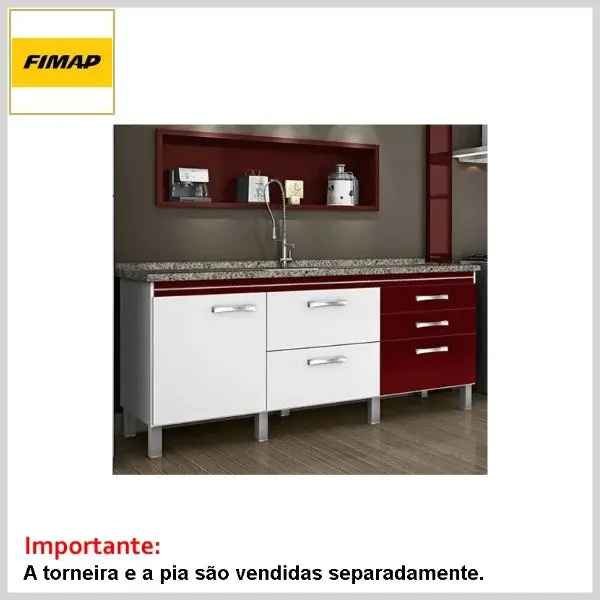 Gabinete de Cozinha 1.94 s/Tampo Magnus Branco e Bordô - 1940 x 685 x 525mm - Fimap