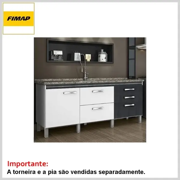A torneira e o tampo da pia não acompanham o conjunto (adquirir à parte).