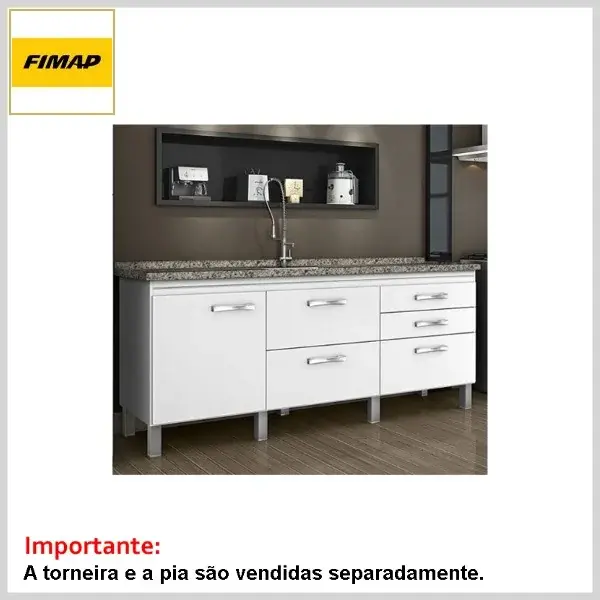 A torneira e o tampo da pia não acompanham o conjunto (adquirir à parte).