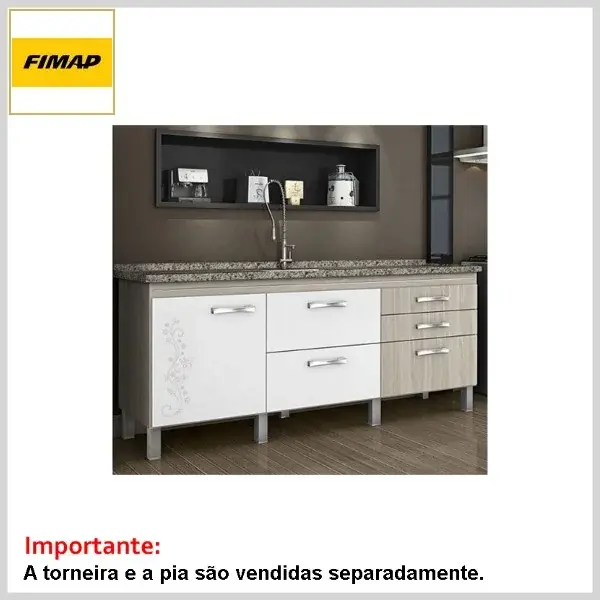 A torneira e o tampo da pia não acompanham o conjunto (adquirir à parte).