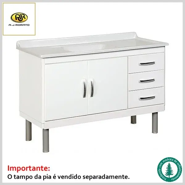 O gabinete é vendido separadamente da pia e seus acessórios.