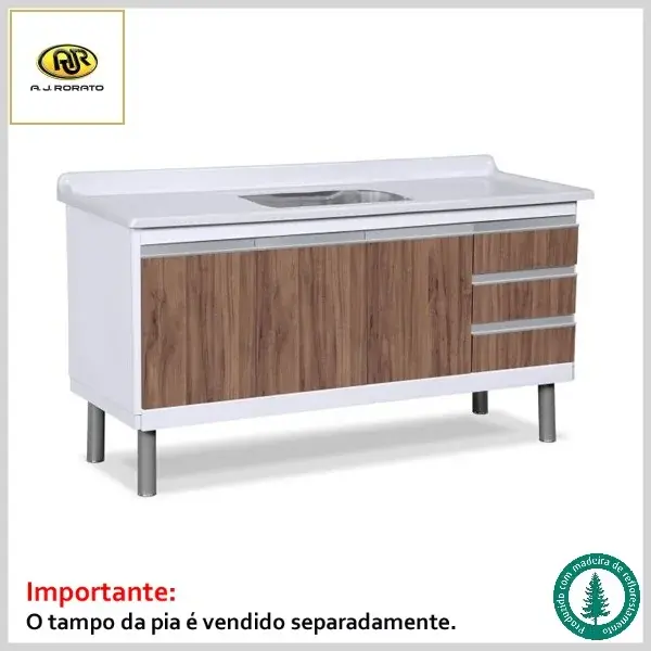 O gabinete é vendido separadamente da pia e seus acessórios.