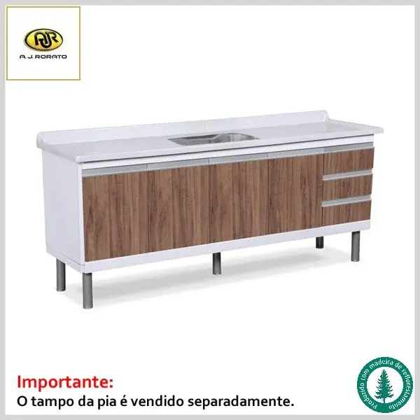 O gabinete é vendido separadamente da pia e seus acessórios.
