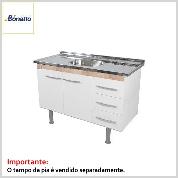 Gabinete para pia de 1,20 mts. (2 portas + 3 gavetas)