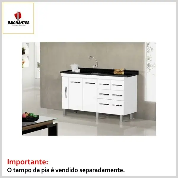 O tampo da pia não acompanha o gabinete (adquirir à parte).