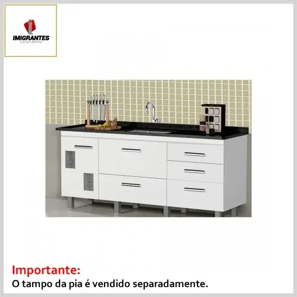 Gabinete de Cozinha MDP s/Tampo Mondrian Branco - Largura 1.5m (L146 x P51 x A83cm) - Imigrantes