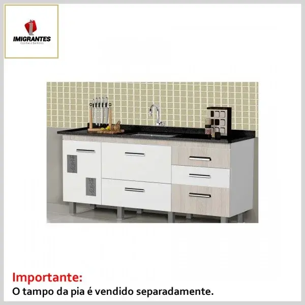 Gabinete de Cozinha MDP s/Tampo Mondrian Madeirado - Largura 1.5m (L146 x P51 x A83cm) - Imigrantes