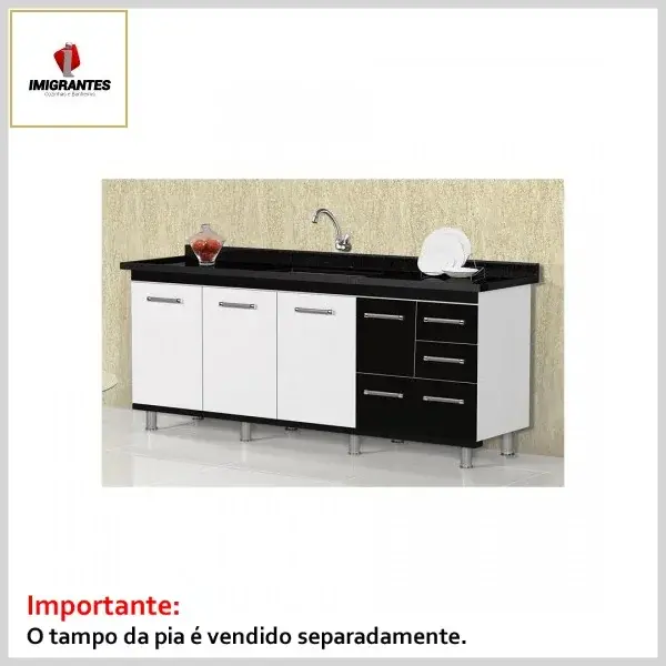 Gabinete de Cozinha MDP s/Tampo Verona Preto - Largura 1.5m (L141 x P52 x A83cm) - Imigrantes