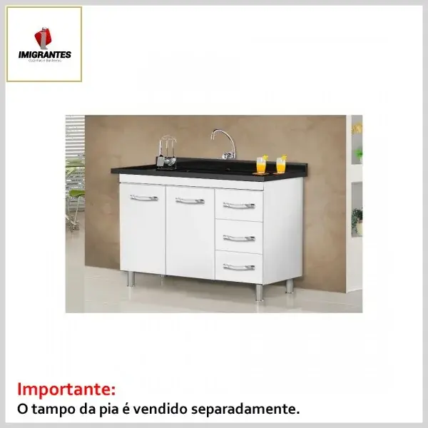 Gabinete de Cozinha MDP s/Tampo Viena Branco - Largura 1.2m (L113 x P54 x A83cm) - Imigrantes