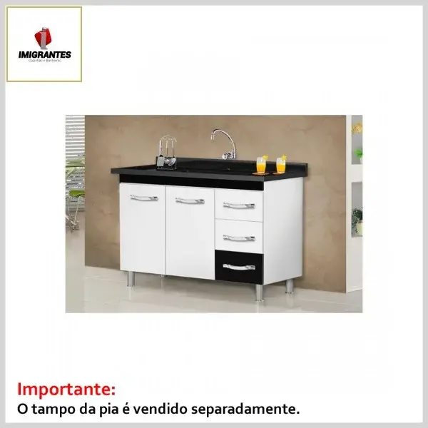 Gabinete de Cozinha MDP s/Tampo Viena Preto - Largura 1.2m (L113 x P54 x A83cm) - Imigrantes